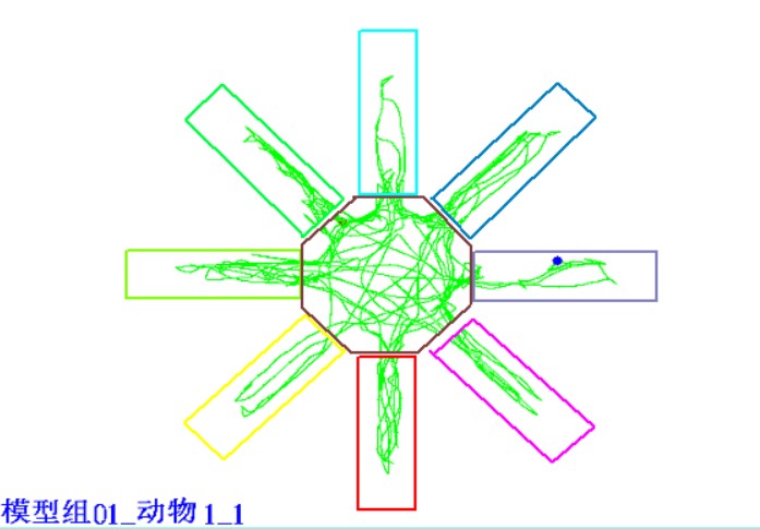 八臂迷宮實驗分析系統(tǒng)(Radial Maze)用來檢測藥物或大腦受損狀態(tài)下學習和記憶方面的表現(xiàn),它由八個完全相同的臂組成,這些臂從一個中央平臺放射出來,所以又被稱為放射迷宮(Radial Maze)。 每個臂盡頭有食物提供裝置,根據(jù)分析動物取食的策略即進入每臂的次數(shù)、時間、正確次數(shù)、錯誤次數(shù)、工作記憶、參考記憶、路線等參數(shù)可以反映出實驗動物的空間記憶能力。相對而言,八臂迷宮操作簡便、可行,而且能區(qū)分短期的工作記憶和長期的參考記憶,現(xiàn)已被廣泛用于學習記憶功能評價。